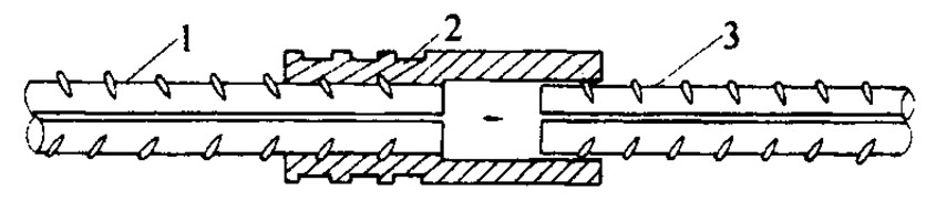 1-已挤压的钢筋;2-钢套筒;3-未挤压的钢筋