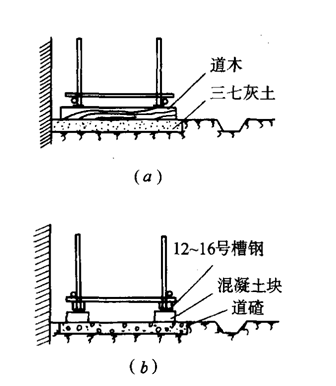 (a)垫道木;(b)垫槽钢