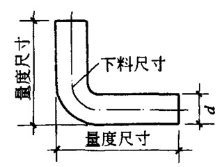 钢筋弯曲后的特点:一是在弯曲处内皮收缩、外皮延伸、轴线长度不变;二是在弯曲处形成圆弧。钢筋的量度方法是沿直线量外包尺寸(图9-46);因此,弯起钢筋的量度尺寸大于下料尺寸,两者之间的差值称为弯曲调整值。弯曲调整值,根据理论推算并结合实践经验,列于表9-23。