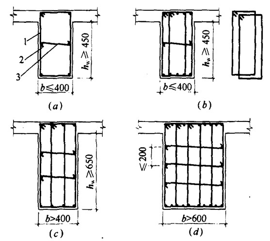 (a)双肢箍筋;(b)与(c)四肢箍筋;(d)六肢箍筋