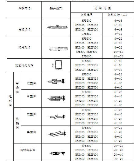 钢筋焊接方法的适用范围