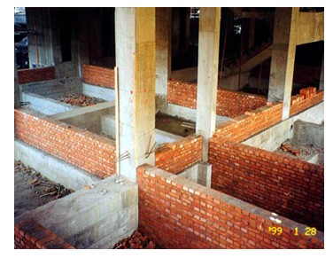 混合结构体系的后砌隔墙,最好在新砌墙两端原有的墙体上有间隔地掏去部分砌筑块材,使得新墙体砌筑时有可能局部嵌入原有墙体,做到新旧墙体有效搭接。