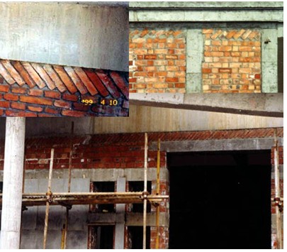 避免成为承重的构件 当墙体砌筑到顶端时,应该将顶层的一皮砖斜砌。