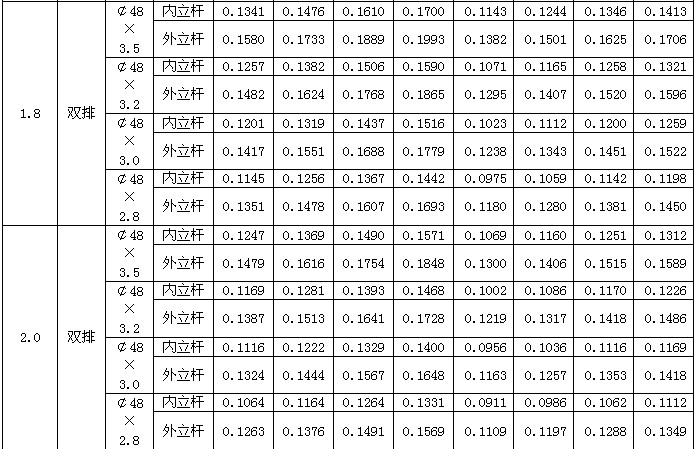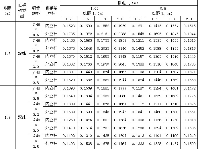 注:除剪刀撑、连接剪刀撑钢管的扣件、剪刀撑同立杆的扣件单独作用于外立杆外,其余结构自重标准值按平均值作用于内外立杆。
