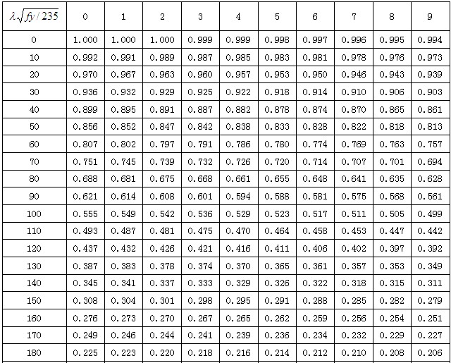 轴心受压构件的稳定系数有哪些