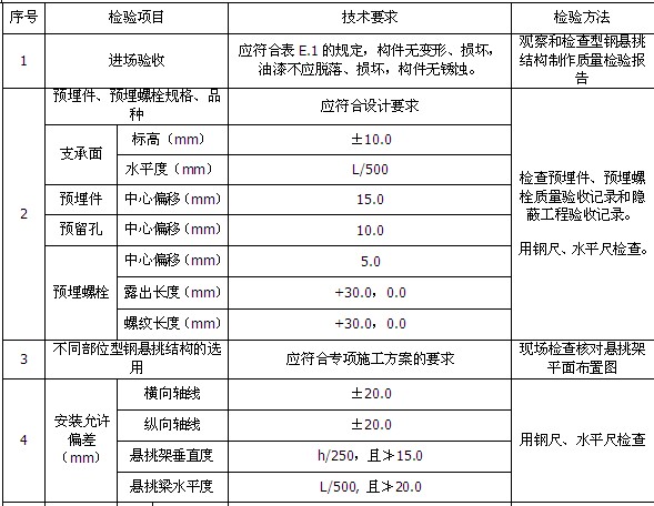 型钢悬挑结构安装技术要求及检验方法有哪些