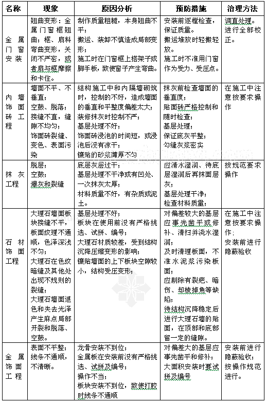 装饰工程常见质量通病及防治措施有哪些