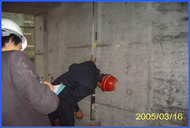 2、室内墙面抹灰前应对房间方正尺寸进行检查,根据偏差值,在踢脚线(距楼地面150mm)位置打粑@2000mm,再复查房间抹灰打粑的尺寸,无偏差后依据打粑的实际厚度冲墙面抹灰厚度的竖向柱