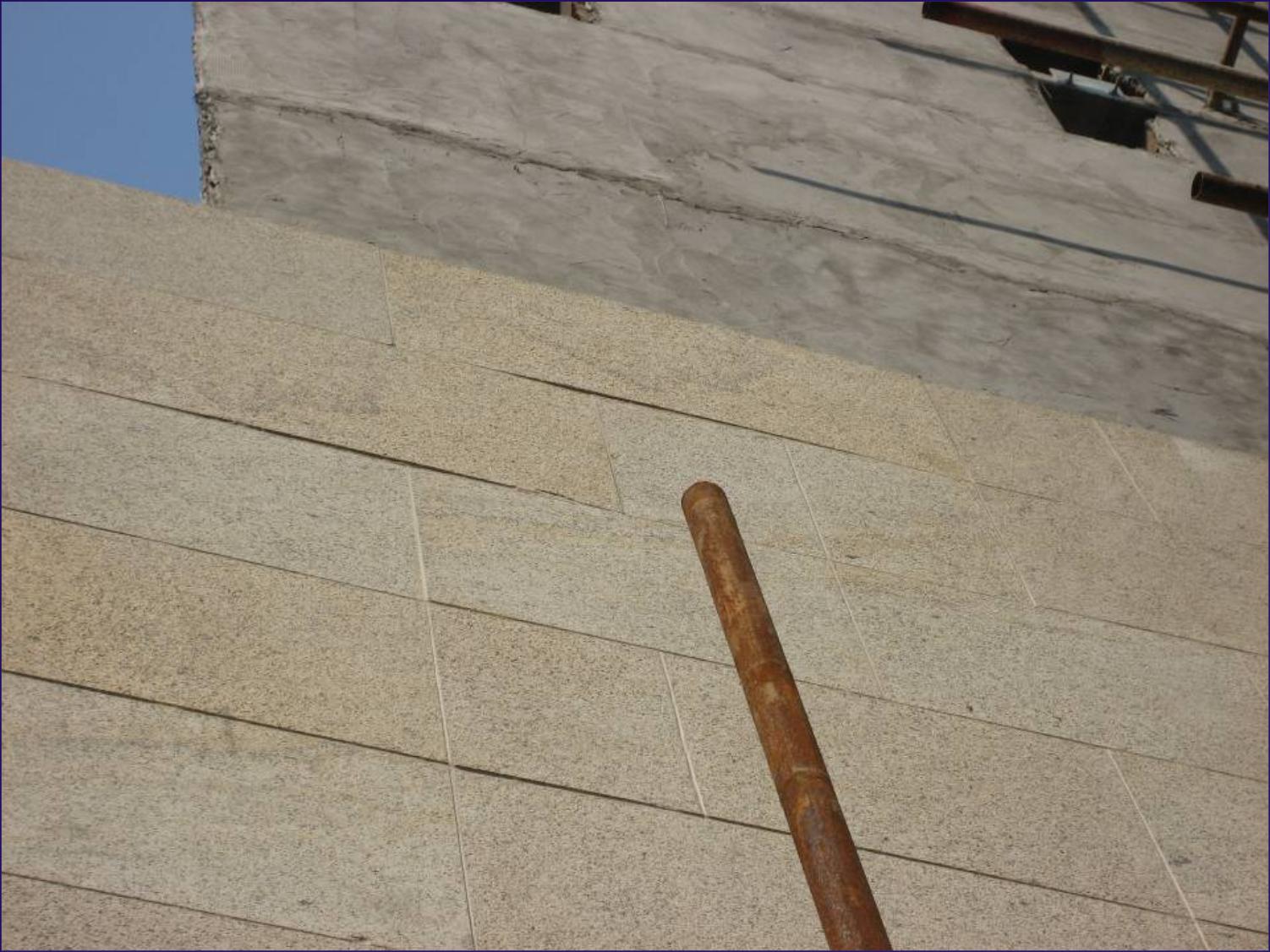 ③外墙干挂石材幕墙应对龙骨和后置埋件进行严格的隐蔽验收(节点、防锈等检查)石材的连接件应为不锈钢,严禁使用镀锌件