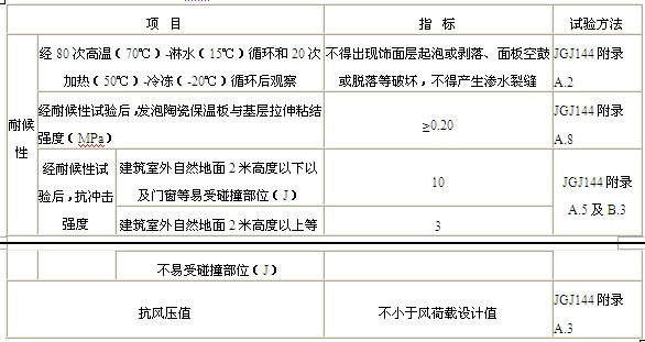 陶瓷保温板粘贴砂浆主要性能指标应满足的要求。