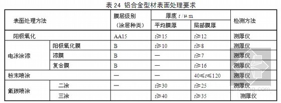 a)铝合金型材和板材执行标准参见本标准附录A,应符合其中A.1所列标准的规定,型材精度为高精级。表面处理层的厚度应满足表24的要求。