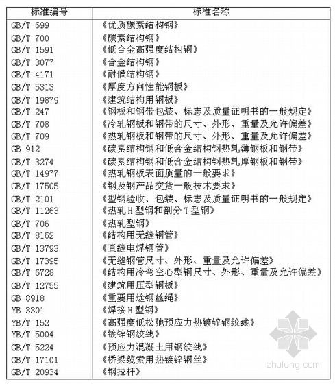 5.2.1、钢材订货时,其品种、规格、性能等均应符合设计文件和国家现行有关钢材标准的定,常用钢材产品标准宜按表5.2.1采用。