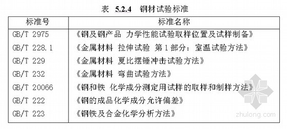 5.2.4、钢材复验内容应包括力学性能试验和化学成分分析,其取样、制样及试验方法可按表5.2.4中所列的标准执行。