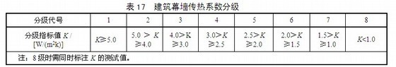 5、幕墙传热系数分级指标K应符合表17的要求。
