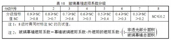 b)玻璃幕墙的遮阳系数分级指标SC应符合表18的要求。