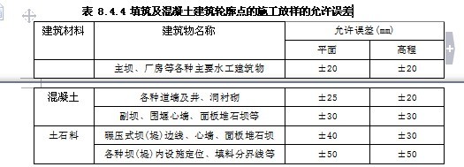 填筑及混凝土建筑轮廓点的施工放样偏差
