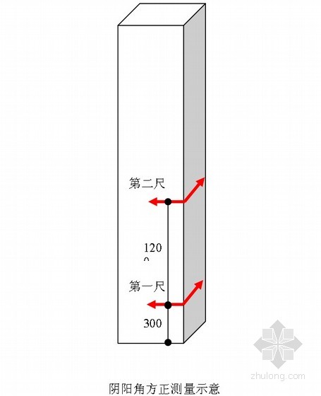 (2)在同一个墙面阴角或阳角部位,从地面向上300mm和1500mm位置分别测量1次。2次实测值作为判断该实测指标合格率的2个计算点。