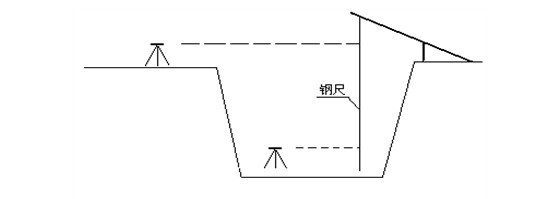 为了保证测设精度,在挖到槽底后,在东面用钢尺一次到基底,减少误差,基底标高点不少于3点。土方开挖基底标高控制示意图: