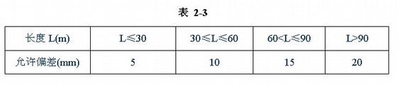 基础验线时,经检查复核发现基础放线误差,轴线允许偏差超出规范规定(见表23)