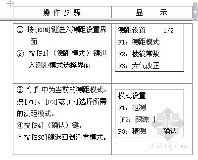 跟踪模式:此模式测量时间短但精度低,只精确到厘米位。常用于精度要求不高的放样测。测距时间约0.5秒距离显示精度10毫米