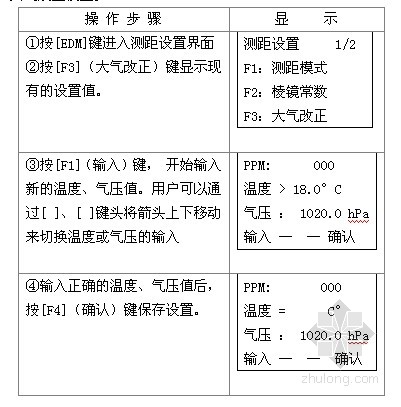 RTS600系列全站仪的大气改正值由测绘人员直接输入温度和气压进行修正。在测量工作开始前,要正确测量当时的温度和气压,以保证输入准确的温度、气压值,从而测得真实的距离。