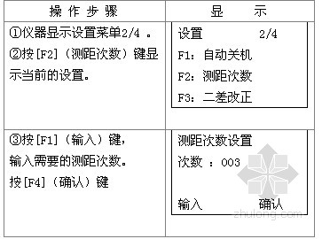 注:若将测距次数设为0时,按下测距键全站仪将不停得测距,只有按下停止键或再次按下测距键,测距才会停止,为了达到省电又保证精度的效果一般将测距次数设为3。