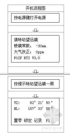 开机前全站仪应已经对中整平,否则屏幕上将显示TiItOver,提示全站仪没有整平并超出补偿范围。按⊙(红色电源键)开机,按提示全站仪望远镜转动一周,听到嘀的一声响表示全站仪初始化成功,可以正常使用。一般情况下应进入基本测量模式,如果上次关机前处在其他的测量模式,全站仪将进入上次的测量模式,此时按ESC返回基本测量模式。