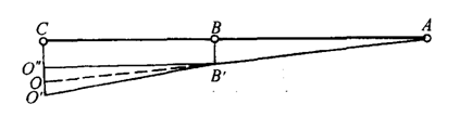 如此重复操作,直到O"和O点落于C点的两侧,且CO"=CO的时候,仪器就恰好位于AC直线上了。