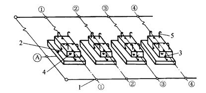1-中线端点;2-基础面上中线点;3-柱身下端中线点;4-柱身下端标高点;5-钢筋上标高点
