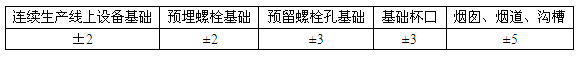 (2)基础中心线竣工测量的允许偏差应符合下列规定:根据厂房内、外控制点测设基础中心线的端点,其允许偏差为1mm;基础面中心线投点允许偏差,应符合表4-41的规定。