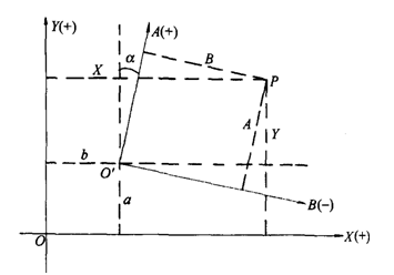则P点在两个系统内的坐标,Y、X和A、B的关系式为: