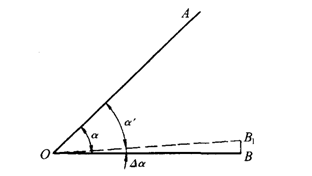 测设已知角度时,只给出一个方向,按已知角值,在地面上测定另一方向。如图4-3,OA为已知方向,要在O点测设角。为此,在O点设置经纬仪,以正镜测设值得B"。为了消除仪器误差的影响,再以倒镜测设角得B。取B"B之中得B1,则AOB1即为所设之角。