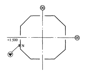 建筑物出地面后,以BM1水准点精密地把高程引测至核心筒外壁西北角+1.500m处N点,N点红三角标志如图4-172所示,作为向上引测高程基准点,并与地下室标高进行连测与检查。
