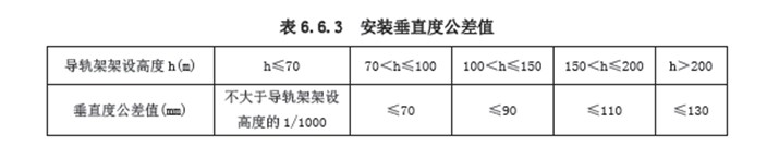 3导轨架轴心线对底座水平基准面的安装垂直度应符合表6.6.3 的规定。