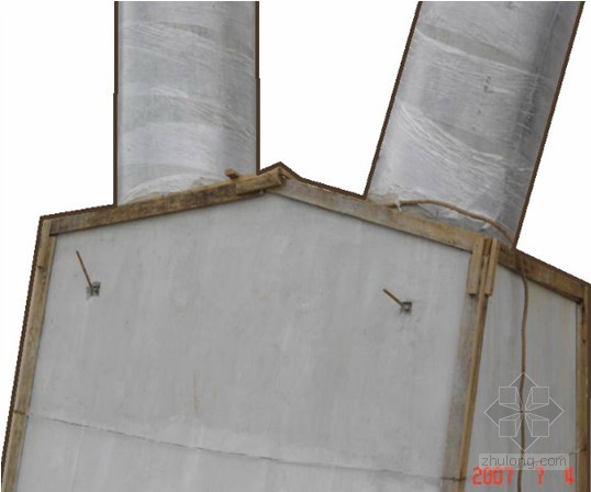 人字柱及墩基拆模后养护应及时,墩基边角应保护完整。长度偏差+5~-10mm,表面平整度5mm,上下半径偏差20mm,轴线偏差10mm。