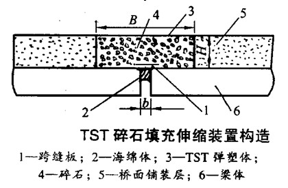 无缝式伸缩装置是指接缝构造不外露于桥面,在梁端部的伸缩间隙中填入弹性材料并铺上防水材料,然后在桥面铺装层中铺筑黏弹性复合材料,使伸缩接缝处的桥面铺装与其他铺装部分形成连续体,以连接缝的沥青混凝土等材料的变形承受伸缩的一种构造。