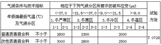 沥青混合料低温弯曲试验破坏应变技术要求有哪些
