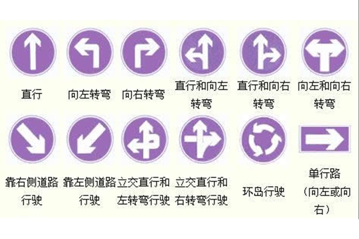 只是标志主要用来指示准许行使的方向,如:向左(右)转,靠左(右)行使,也可用来表示机动车道、或者非机动车道,步行街等。