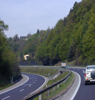 地面横坡较陡,若按整体式断面设计,斜坡下方的左半幅路基的填土高度较高. 避免高填边坡