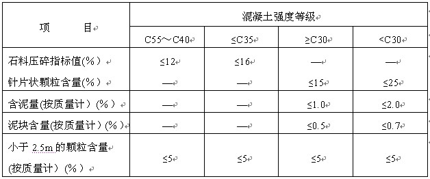 ②混凝土强度在C10及以下时,针片状颗粒最大含量可为40%。