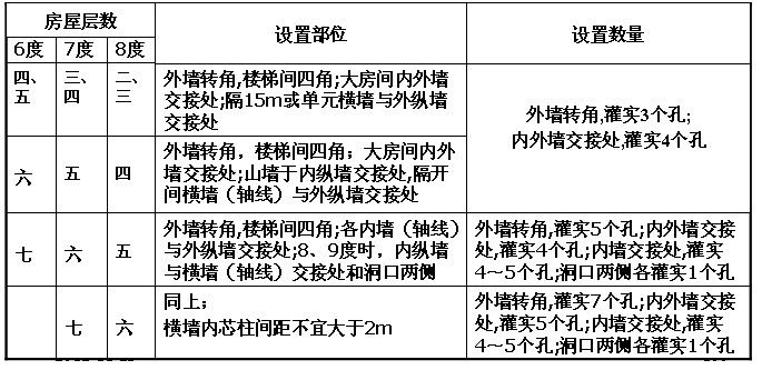 混凝土小砌块房屋应按下表要求设置钢筋混凝土芯柱;对医院、教学楼等横墙较少的房屋,应根据房屋增加一层后的层数按下表要求设置芯柱。