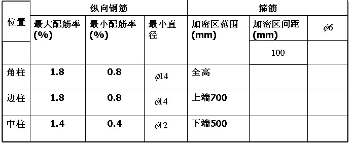 5.所有纵横墙交界处及横墙的中部,均应设置加强柱;该加强柱在横墙内的柱距不宜大于层高,在纵墙内的柱距不宜大于4.2m,最小截面尺寸不宜小于240mm240mm,配筋宜符合下表的要求。