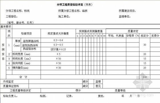 分项工程质量检验评定(样表)标线