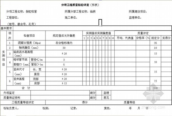 分项工程质量检验评定(样表)倒虹吸管
