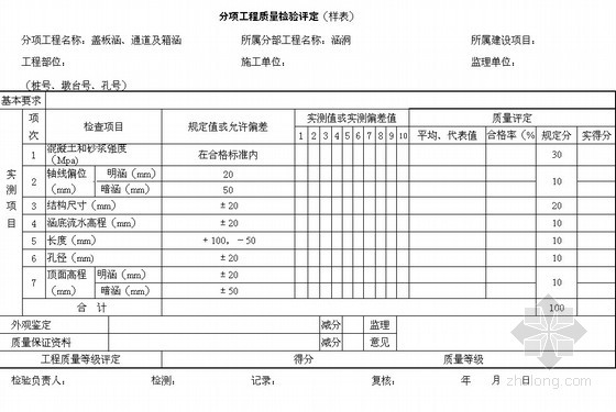 分项工程质量检验评定(样表)盖板涵、通道及箱涵