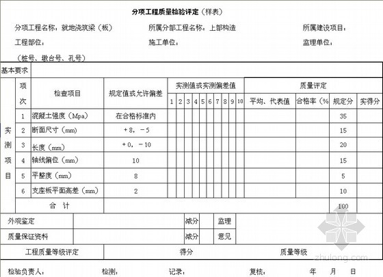 分项工程质量检验评定(样表)后张拉(预应力钢铰线)