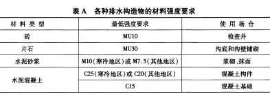 7 路界地表排水设施所用材料的强度应不低于下表规定的要求。