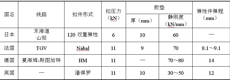 国外高速铁路的扣件型式和参数