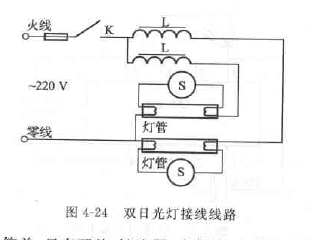 日光灯的电路看似简单.只有开关、镇流器、启辉器、灯管儿个器件按原理连接就可以。其实不然.对于开关和启辉BF的动静接点的位置不同.其启动性能也是不同的仔细考虑.有好儿种接线方式。最好的接线方法是,电源开关和镇流器都接在火线端,灯丝一端接零线,而且启辉器的动接点的方向应远离火线较近的一侧,这样就可以获得较高的脉冲电势,得到较好的启动性能,并延长灯管的寿命。双日光灯的接线也应遵循这个原则。
