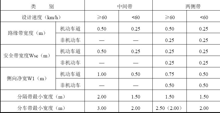 3 分隔带最小宽度值系按设施带宽度为1m 考虑的,具体应用时,应根据设施带实际宽度确定。